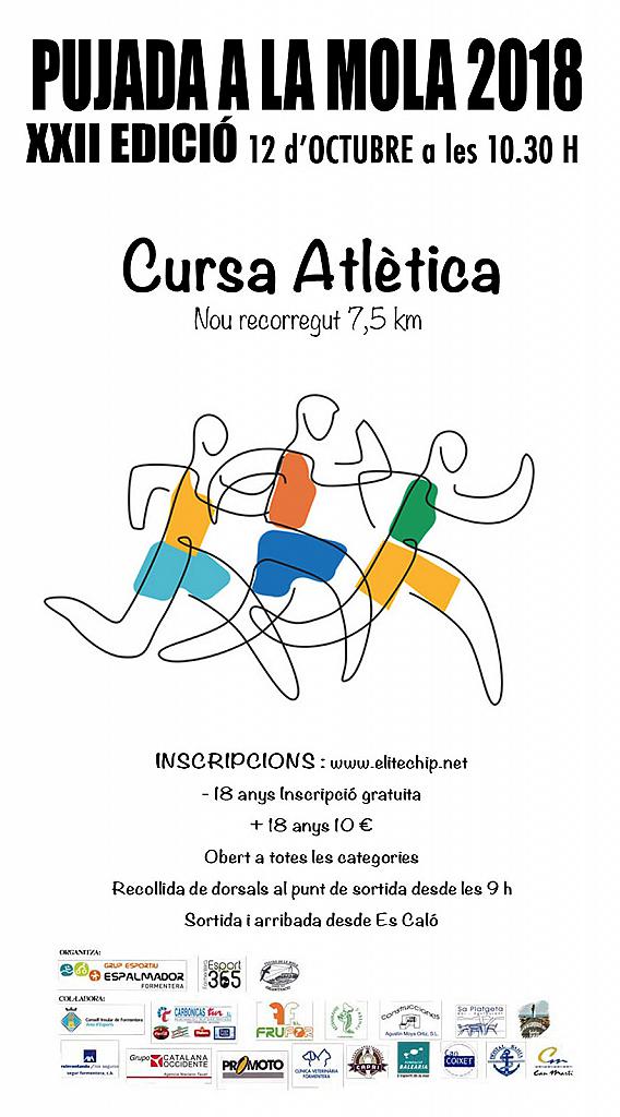 La prova anomenada “PUJADA A LA MOLA”, es celebrarà a Es Caló de Sant Agustí, localitat de Formentera el divendres 12/10/2018 a les 10:30, i es tracta d'una prova de atletisme de muntanya de 7,5 km de distància i FEDERADA a la FAIB.