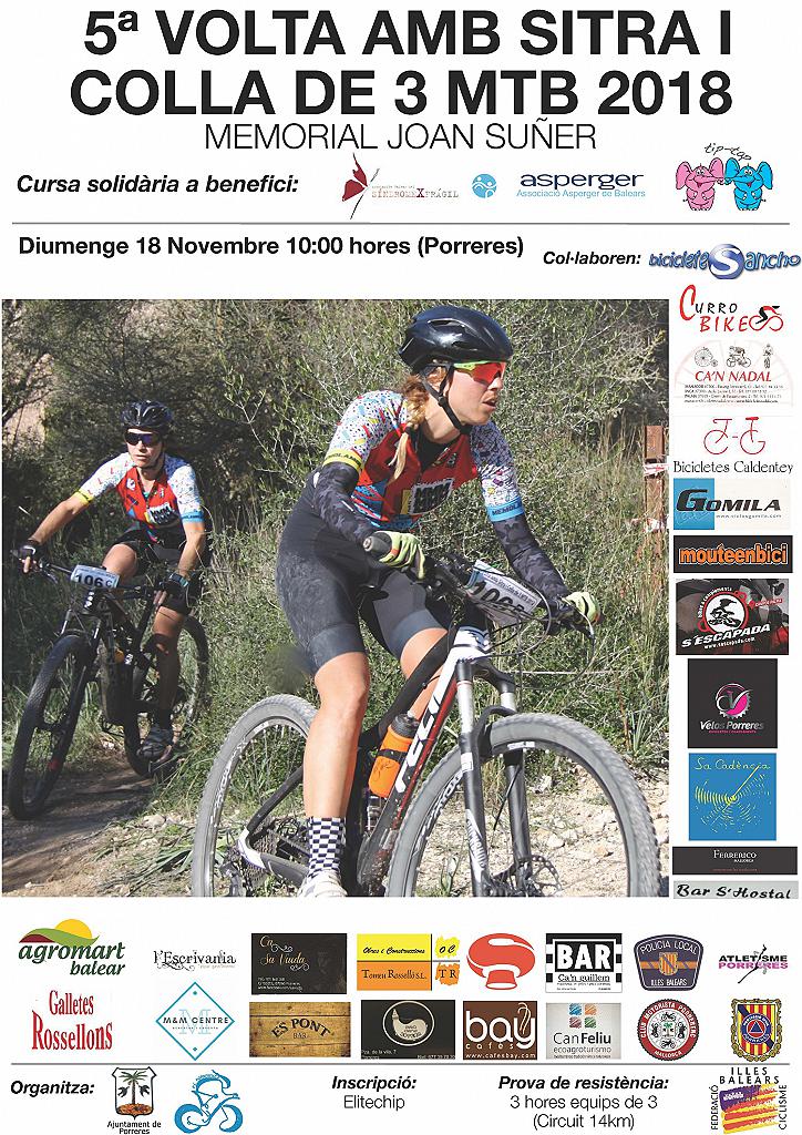 L'ajuntament de Porreres i la Penya ciclista de Porreres,  organitzen “la 5ª Volta amb Sitra i Colla de Tres MTB. Memorial Joan Suñer” el diumenge 18 de Novembre a les 10:00 hores a Porreres. Es tracte d’una cursa de MTB de caire popular per colla de tres, que consisteix en donar el nombre màxim de voltes al recorregut durant un temps de Tres hores.