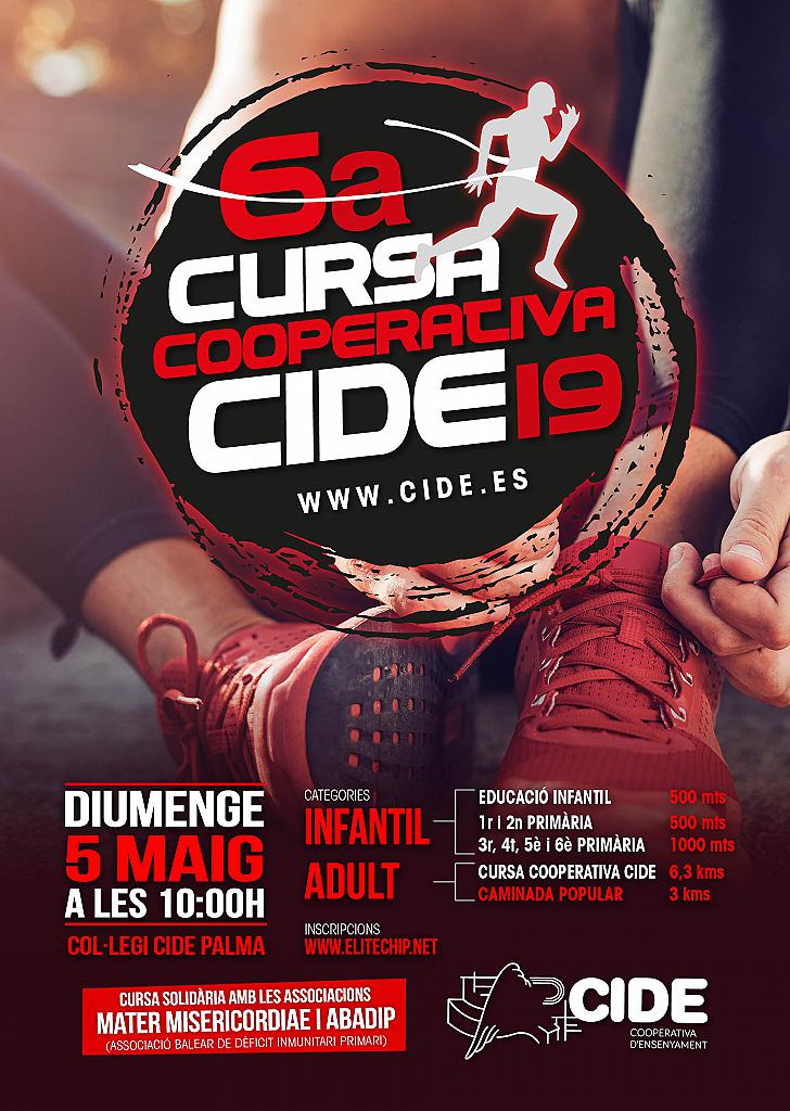 1) El Col·legi CIDE organitza una cursa i una caminada solidàries per el 5 de maig de 2019, a benefici de les següents ONGs: Mater Misericordiae i ABADIP (Associació Balear de Dèficits Inmunitaris Primaris).